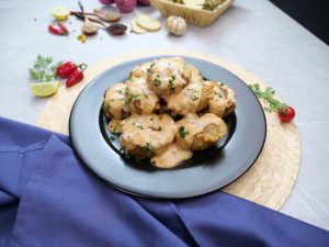 -In a bowl,add grated potatoes & eggs,mayonnaise,red chilli crushed,garlic powder,black pepper powder,salt,dill,fresh coriander,lemon juice,mix well & transfer to a piping bag & set aside.