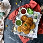 Grease hands with oil,take small quantity (60g) & make kabab of equal sizes (makes 19-20).