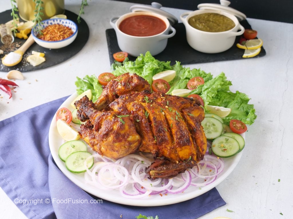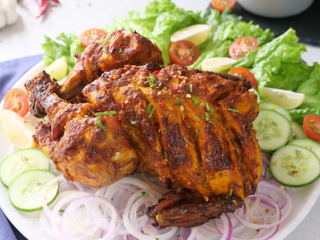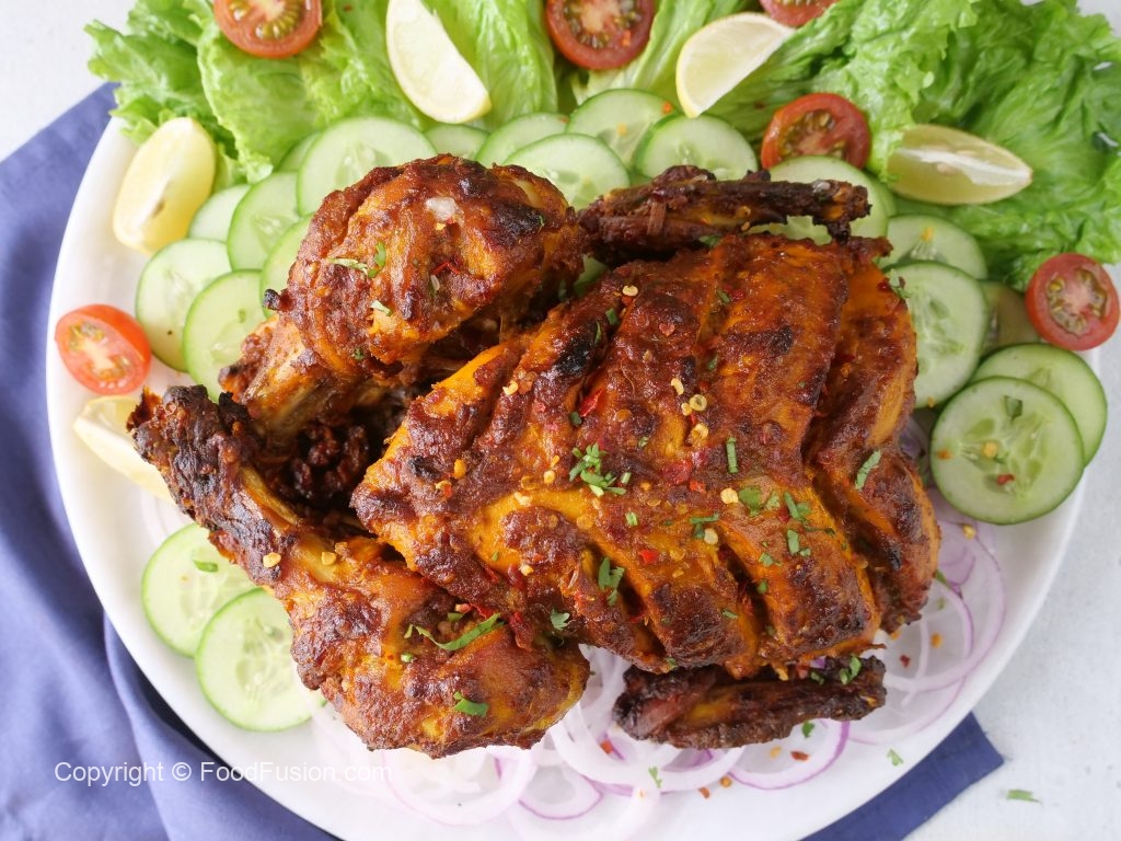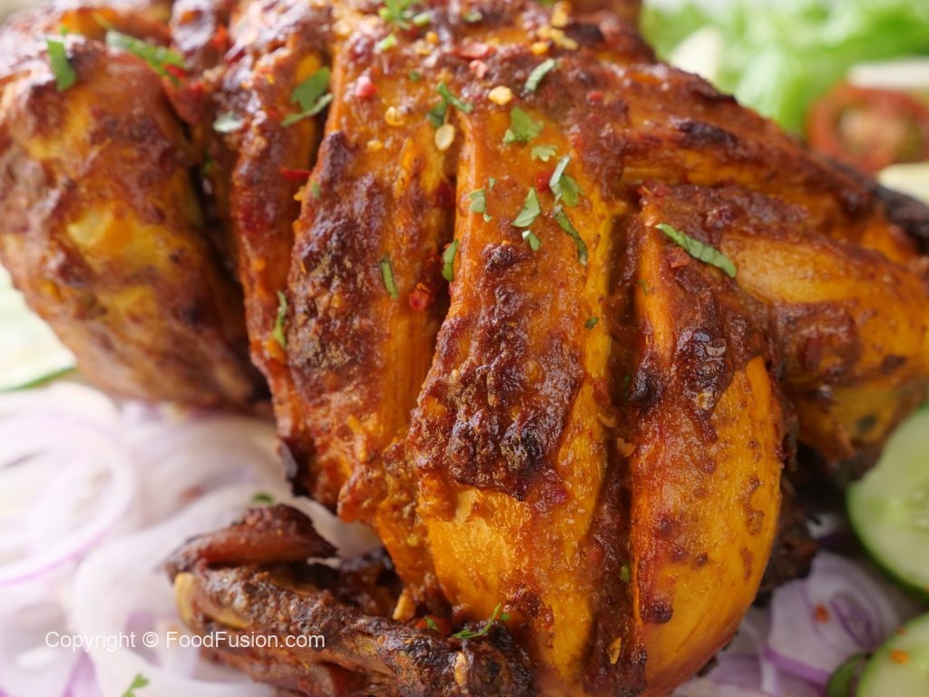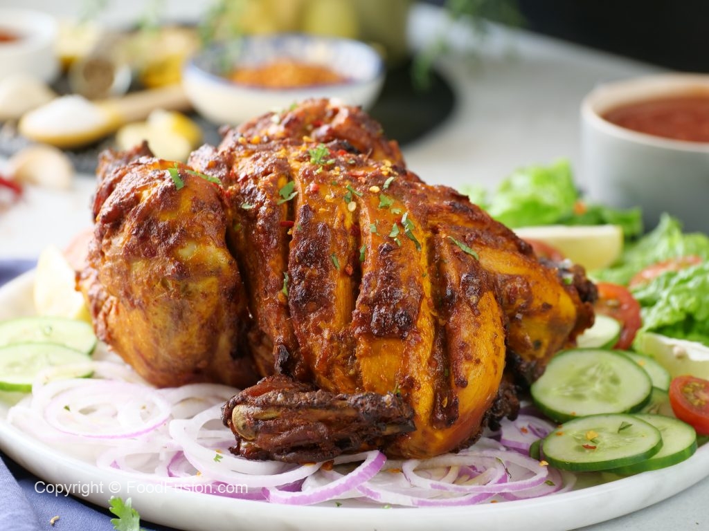 -Whole chicken per deep cuts laga lein & side per rakh dein.