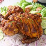 -Whole chicken dal dein aur marinade ko ache tarhan laga lein aur chicken per ache tarhan massage karein,chicken legs ko kitchen thread sa tie ker lein aur dhak ker 2-4 hours kliya marinate ker lein & side per rakh dein.