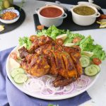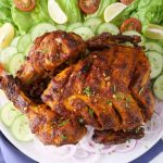 -Add whole chicken & apply marinade evenly & massage chicken well,tie chicken legs with kitchen thread,cover & marinate for 2-4 hours & set aside.