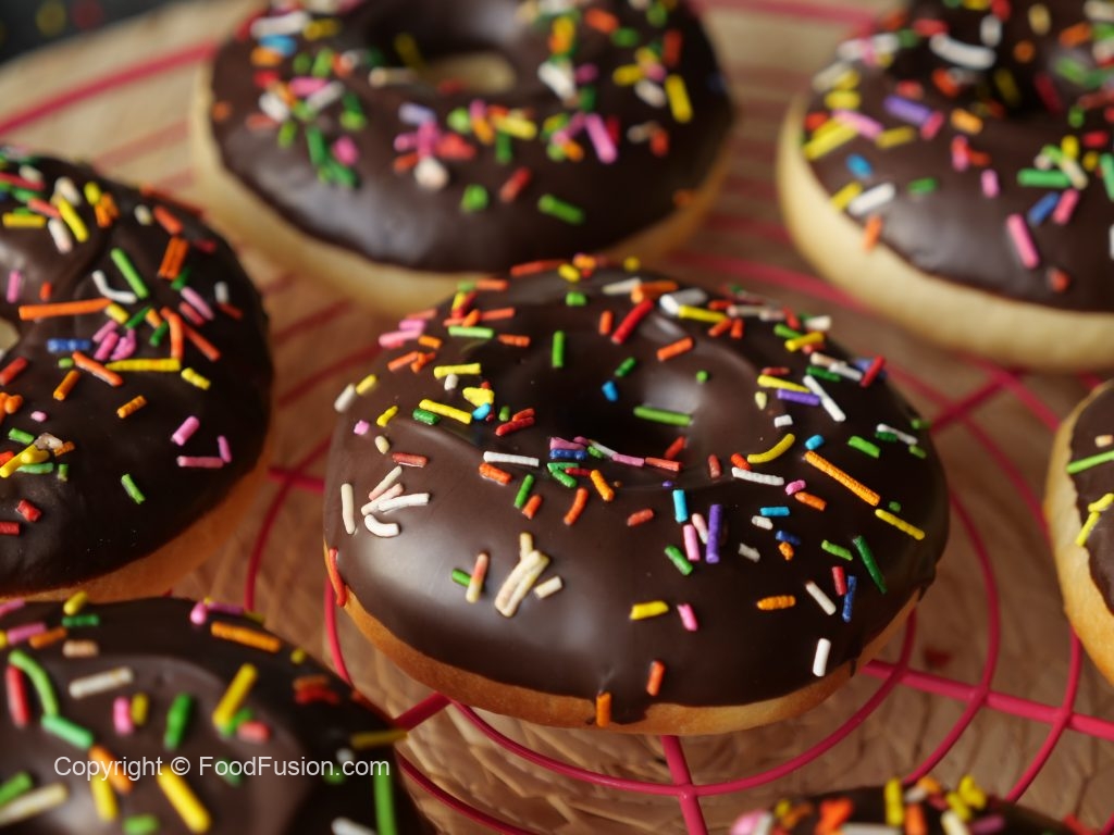 Dip one side of doughnuts in melted chocolate and place it on wire rack to allow excess melted chocolate to drip off.