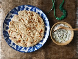 Heat griddle and place rolled paratha on it, fry from both sides with ghee.