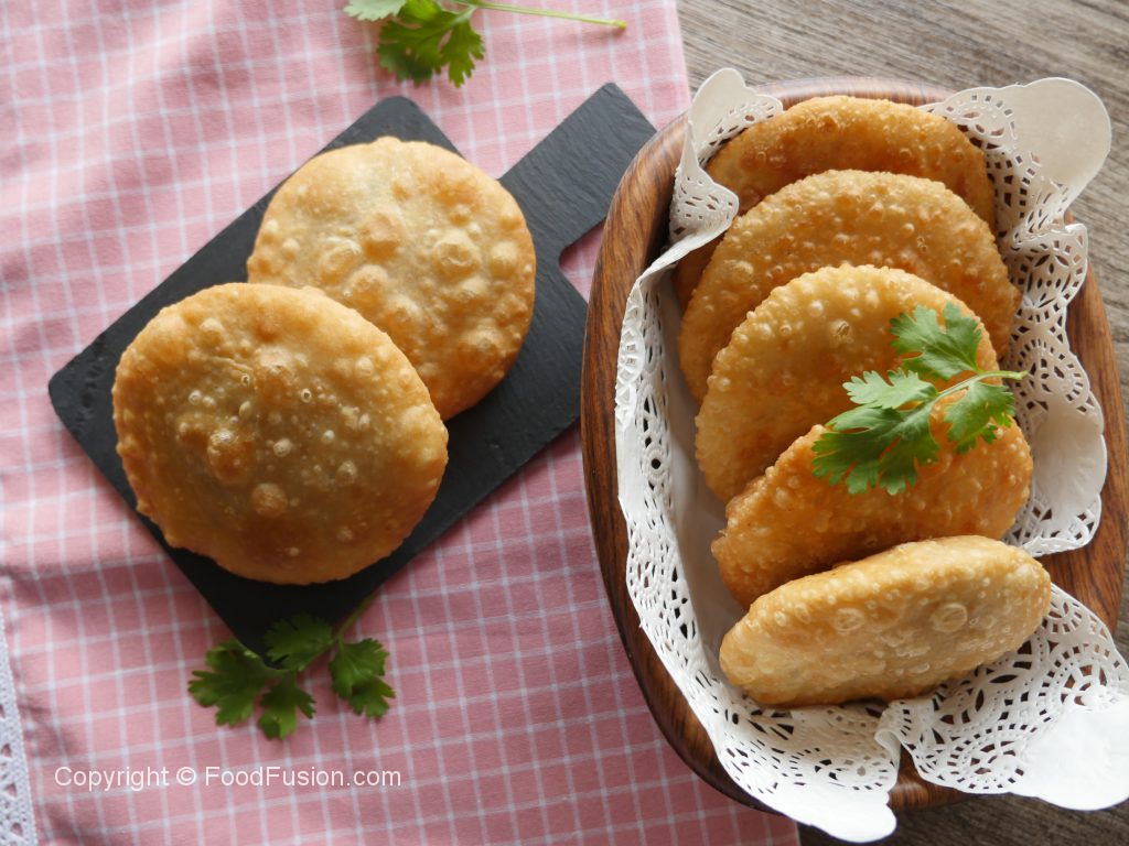 Grease hands with oil,take a stuffed ball and flattened with the help of the palms.