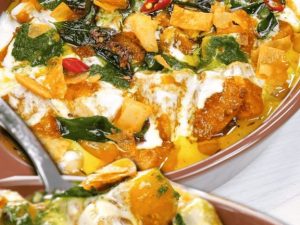 Saucepan mein cooking oil,lehsan aur hari mirch dal ker ache tarhan mix karein aur ek minute kliya paka lein.
