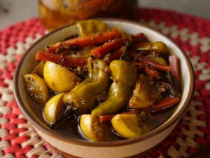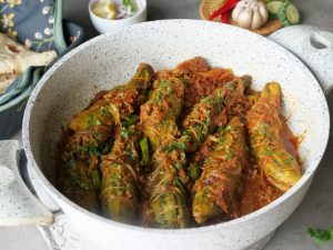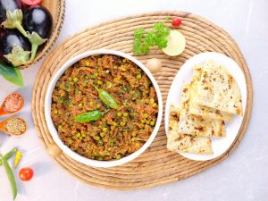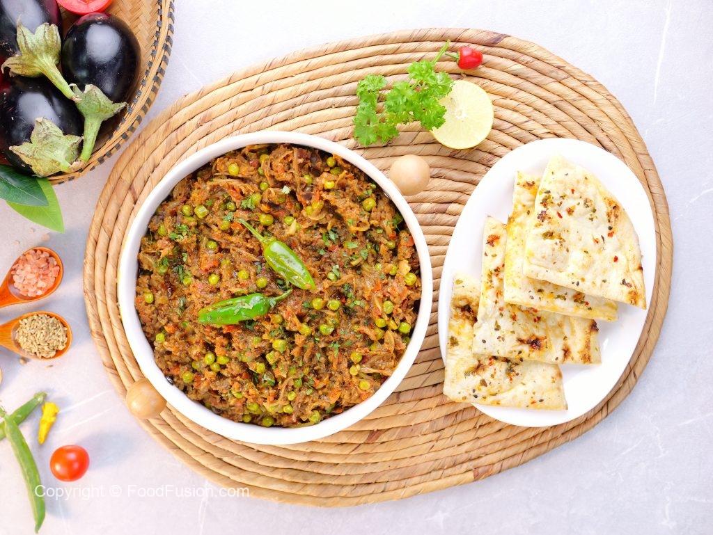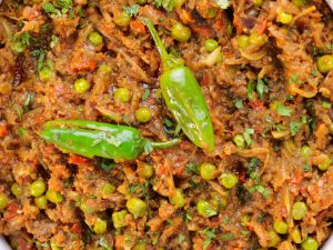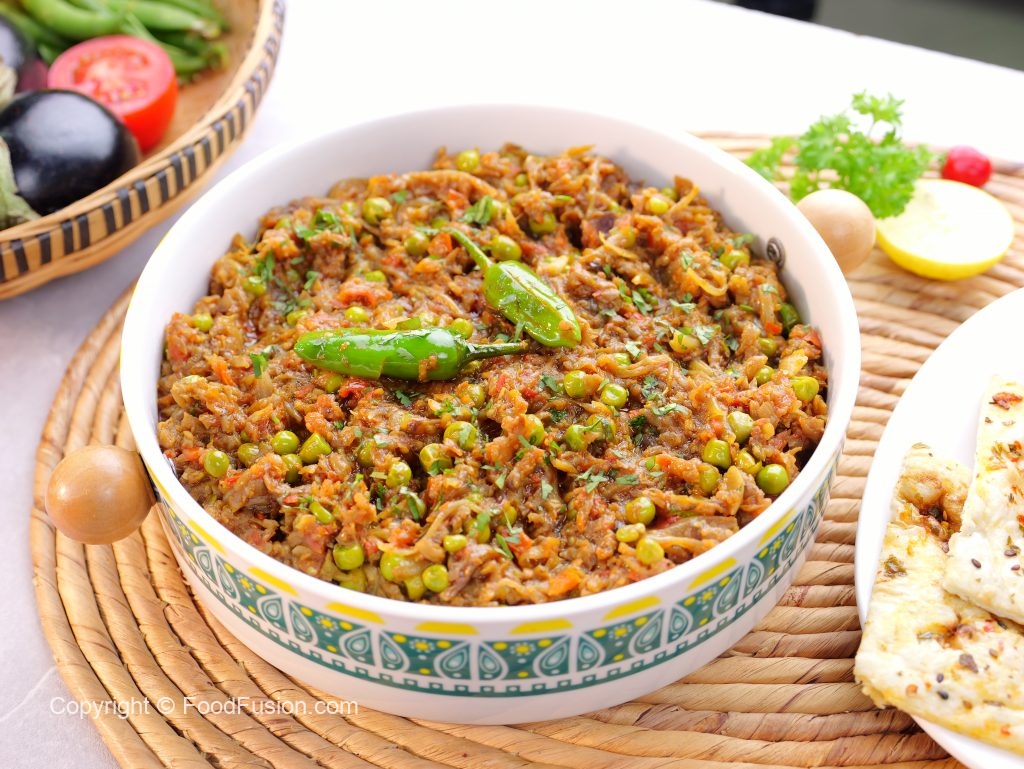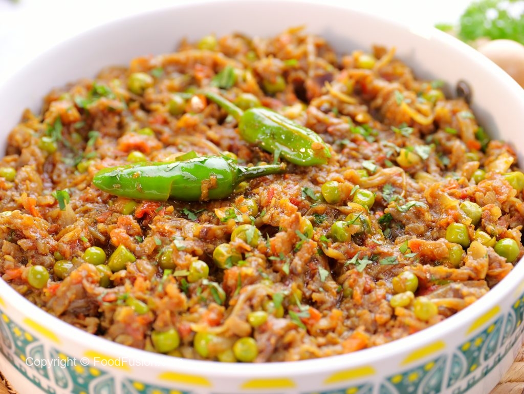 -Hari mirch,grated baingan,matar,pink salt,haldi powder,sabut dhania,lal mirch powder,zeera,Kashmiri lal mirch powder aur saunf dal ker ache tarhan mix ker lein.