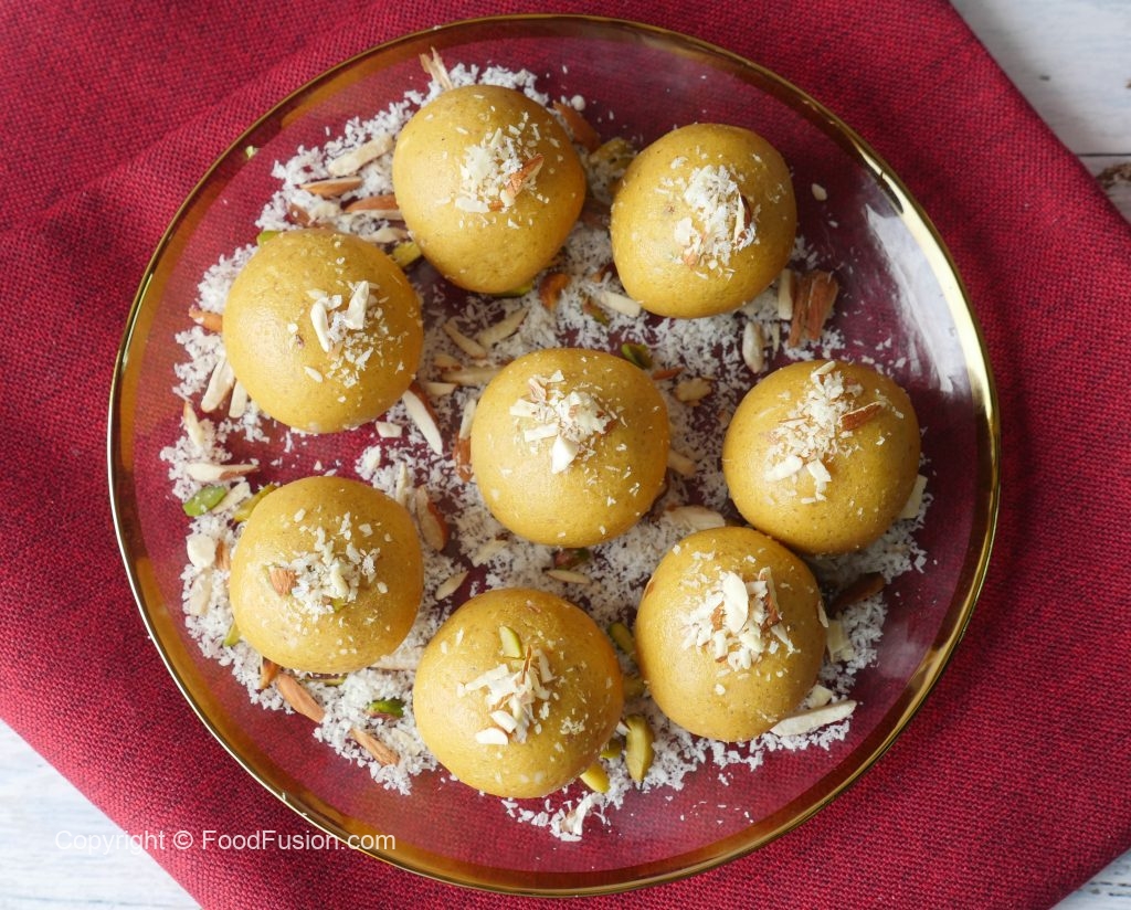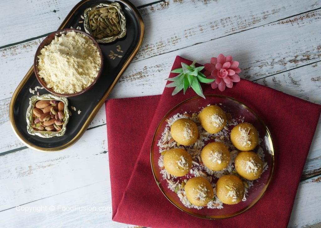 Mixture ko lein aur ek jaisay sizes ka laddu tayyar ker lein (makes 12).