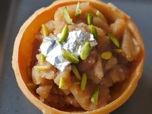 Add cardamom powder,almonds,pistachios,dried melon seeds and mix well.