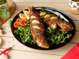 Serve Balochi fried fish with imli tamatar ki chutney!
