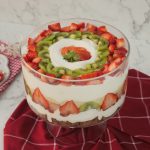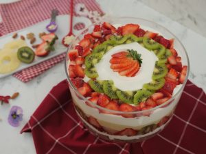 -Olper’s whipped cream aur strawberry puree dal ker pheela lein,strawberry,pineapple aur kiwi ka slices laga lein.