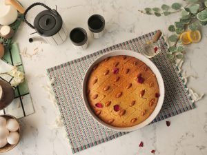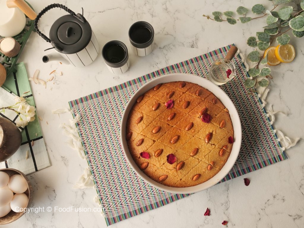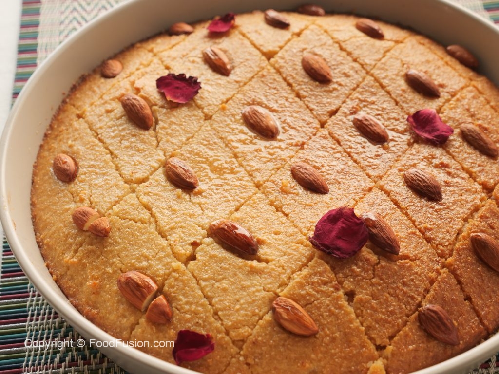 Prepare Basbousa Cake with semolina & almonds: