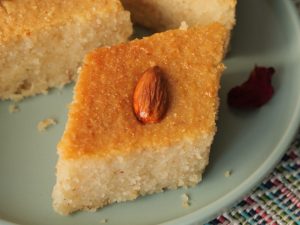 Prepare Basbousa cake with semolina & almonds: