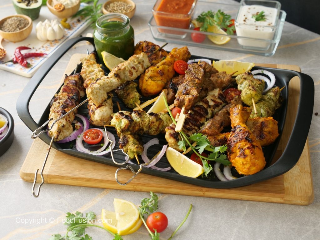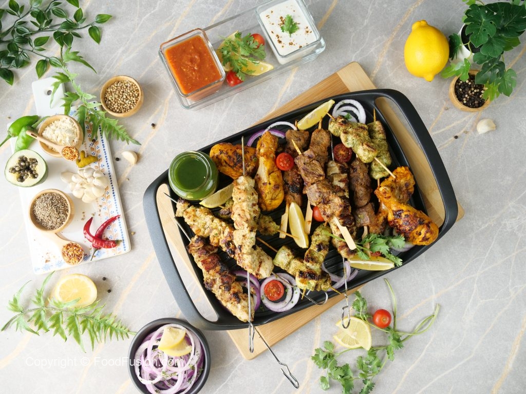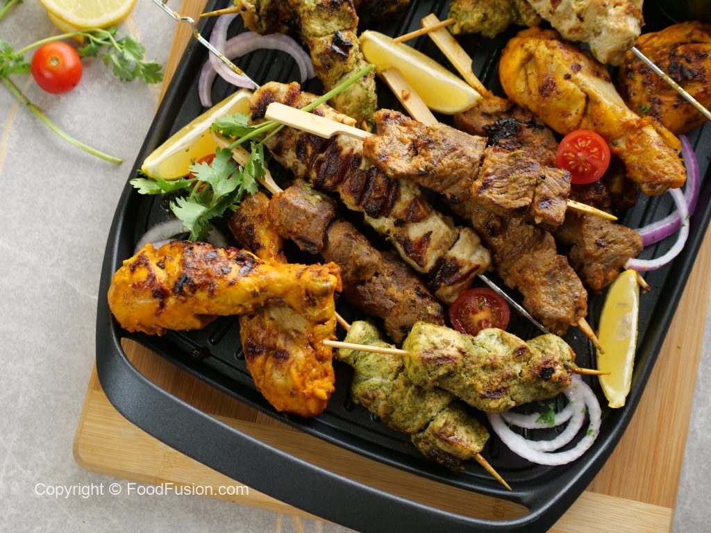 Grill on charcoal or grill in pan (malai boti,chatpatti BBQ beef boti,hari chutni boti,drumsticks) until done (4-5 minutes each side) and brush cooking oil in between.