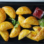 -Apply egg wash & sprinkle sesame seeds (makes 24-26).
