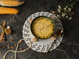 Coarsely ground corn kernels dal ker ache tarhan mix karein aur halki ancch per khushbu anay tak paka lein (4-5 minutes).