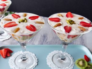 -Add custard in whipped cream,mix & fold gently then transfer to a piping bag.