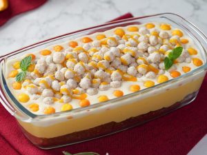 -Ab custard ko whipped cream mein add karein,mix & fold gently karein phir piping bag mein transfer karein.