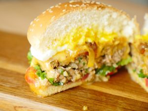 Try this new breakfast burger recipe this weekend and add a new item to your menu. #HappyCookingToyou