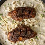 -Sprinkle 2-3 tbs prepared cajun seasoning on both sides of chicken & rub evenly (reserve remaining for sauce) & let them rest for 2-3 minutes.