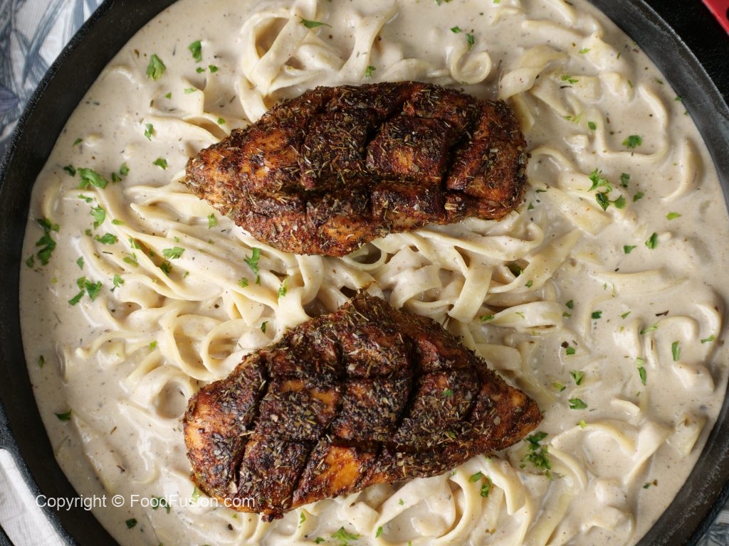 -Cast iron pan mein cooking oil dal dein aur chicken fillets ko halki ancch per dono sides sa paka lein (5-6 minutes each side) & side per rakh dein.