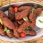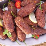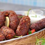 -Take small quantity of chapli kabab mixture & flatten it on your palm,place stuffed green chilli in the center & coat evenly.
