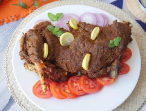 Grill mutton leg in preheated oven at 200 C for 12-15 minutes or until golden brown color appears.