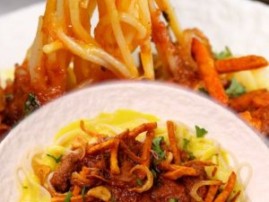 In frying pan,add olive oil,reserved marinade,mix well and cook on low flame for 4-5 minutes & set aside.