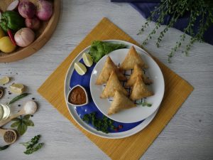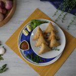 Brush paneer samosa with oil & bake in preheated oven at 200C 20-25 minutes (flip in between once after 15 minutes).