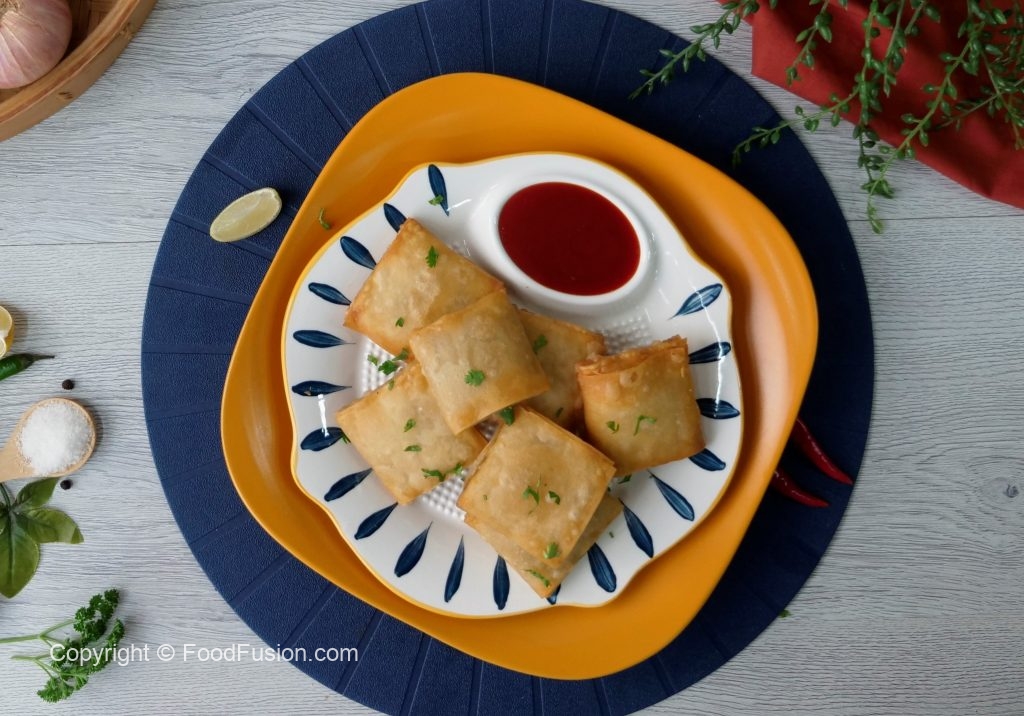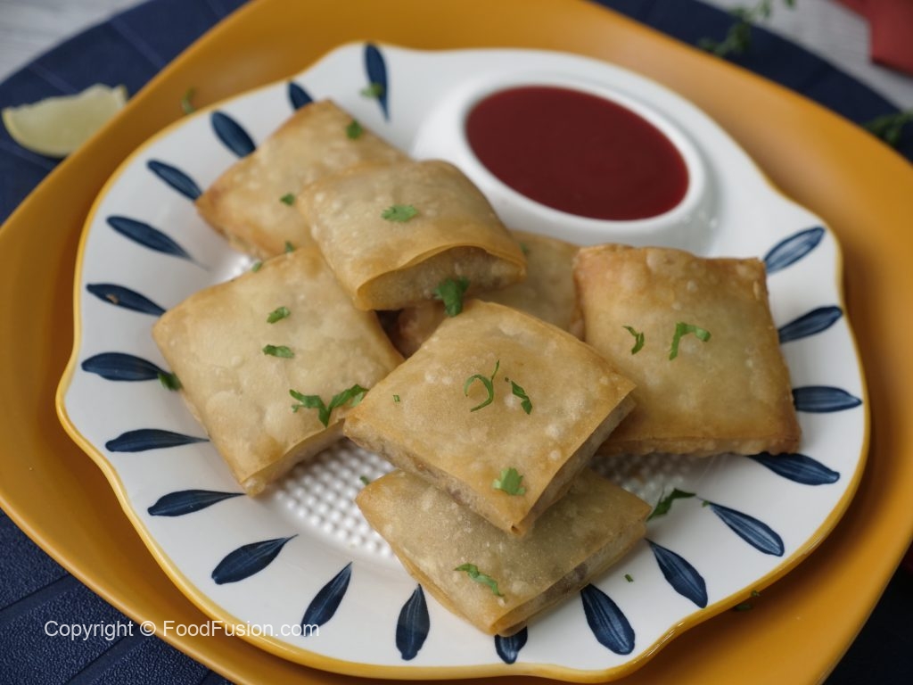 Apply all-purpose flour slurry and fold all sides to make a square box.