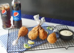 Stuffed chicken lollipops with cheddar cheese cube and mince stuffing & press tightly.