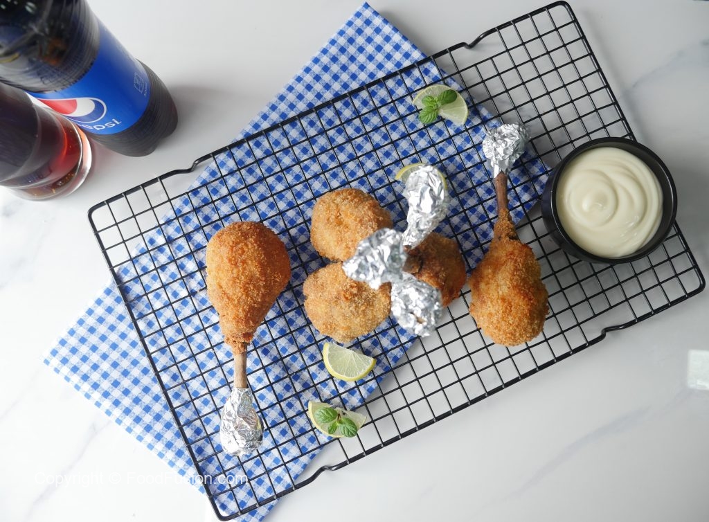 Ab chicken lollipops ko maida ka mixture mein coat karein aur pheetay hoye anday mein dip ker lein phir breadcrumbs mein coat ker lein.