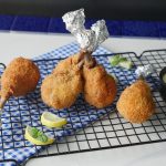 Chicken lollipops ka bech mein cheddar cheese cube aur qeema stuffing bhar dein aur tightly press ker lein.