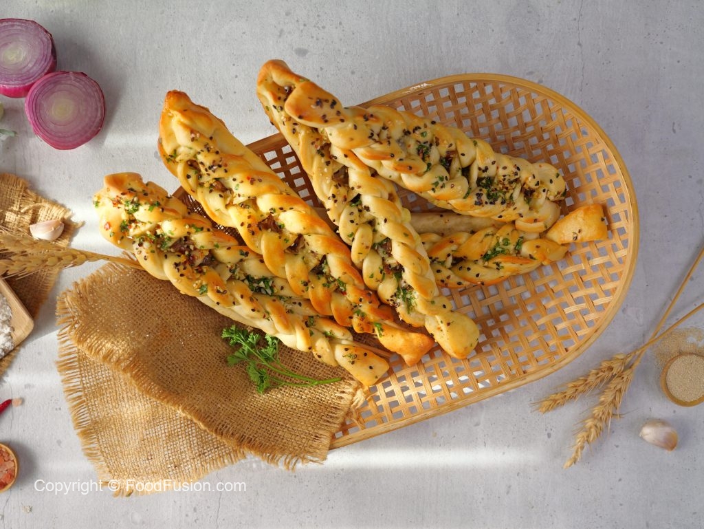 -Braided dough ko greased aur baking paper lined tray mein rakhein.