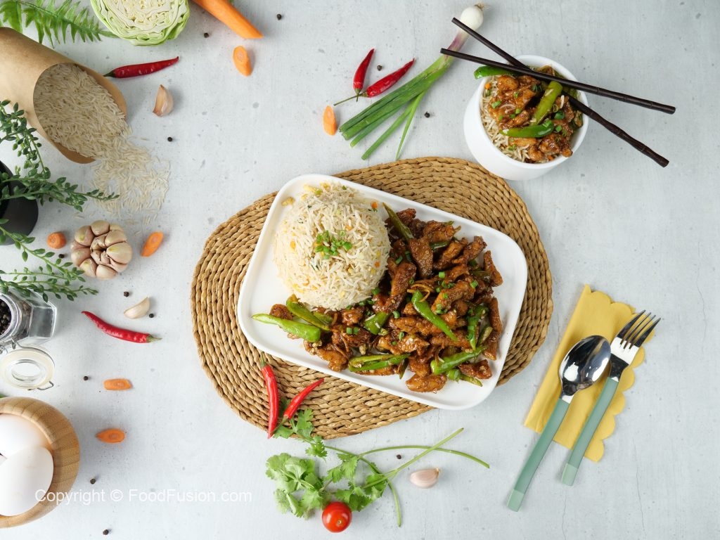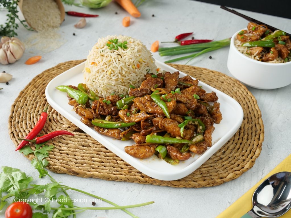A killer combination Chicken Chilli Dry with Fried rice. Now enjoy restaurant quality food at home. #HappyCookingToYou #FoodFusion #Rice