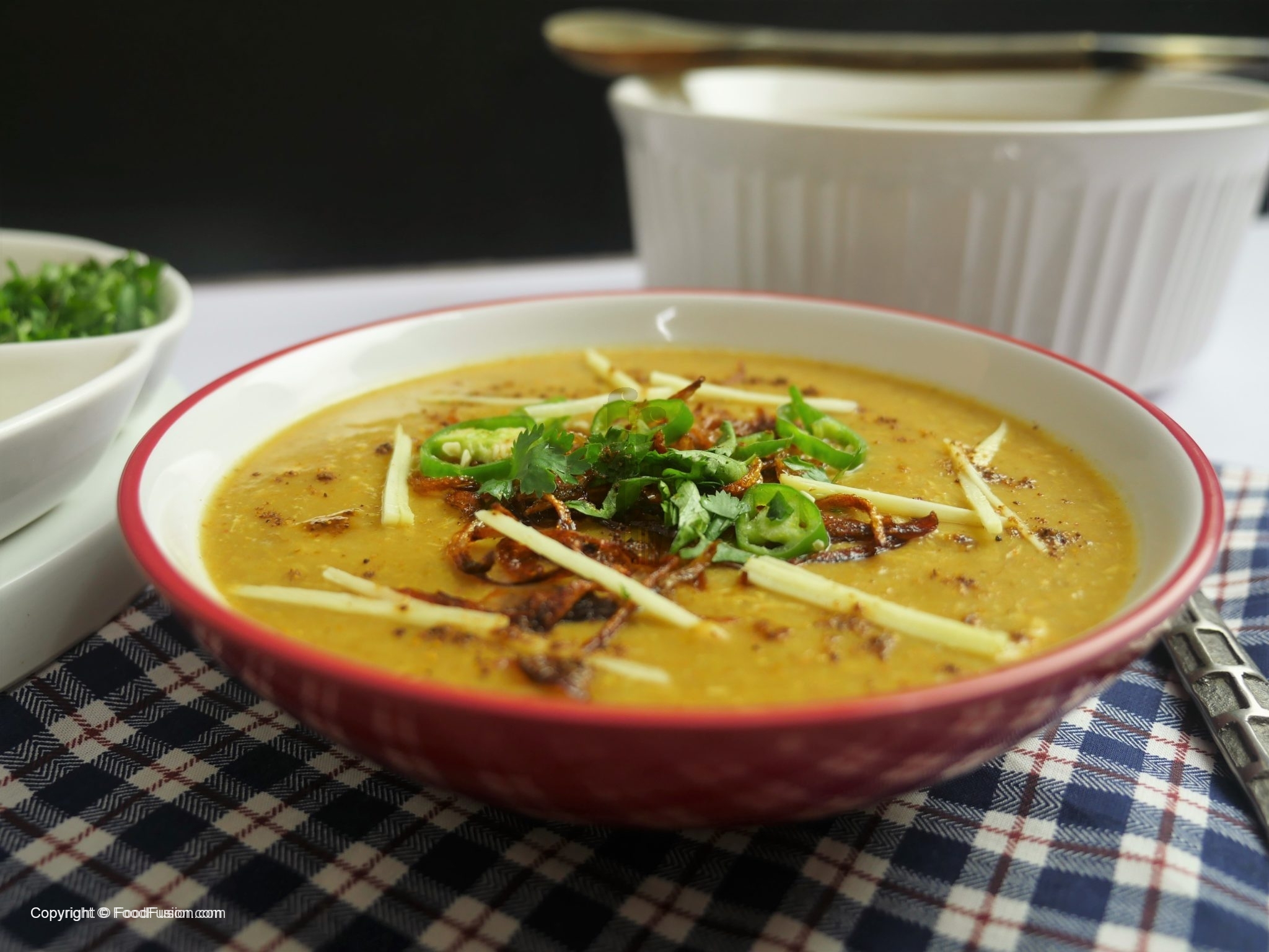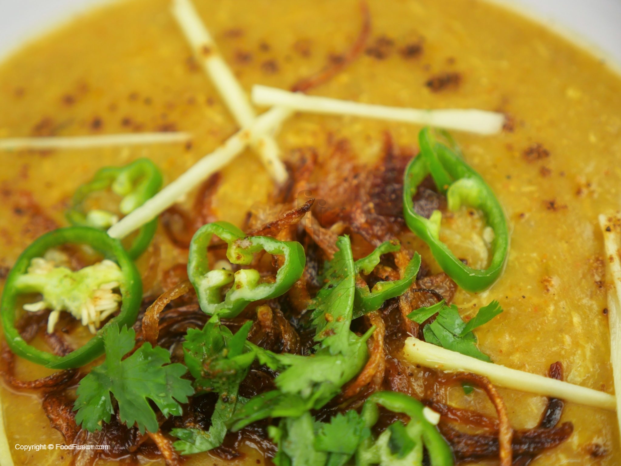 Frying pan mein oil aur pyaz dal ker golden brown hunay tak fry ker lein,fried pyaz ko haleem mixture mein dal ker ache tarhan mix ker lein.