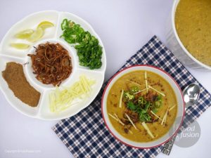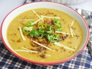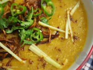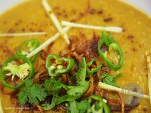 In frying pan,add oil and onion,fry until golden brown,add fried onion in haleem mixture and mix well.