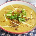 Add salt and boiled water if haleem is too thick (optional) and blend again.
