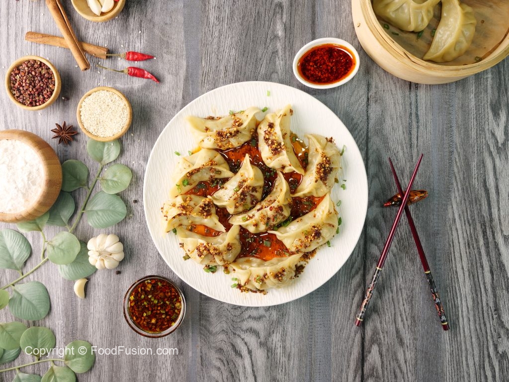 -On dumplings,add prepared chilli oil,dipping sauce,green onion leaves & serve!