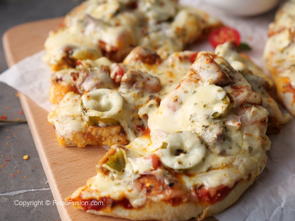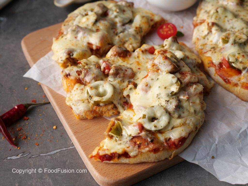 You are all up for a treat today. A finally a desi touch to pizza, Chicken Jalapeno Naan Pizza without oven without any fancy ingredients. #HappyCookingToYou #FoodFusion #PakolaFullCreamMilk