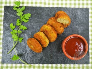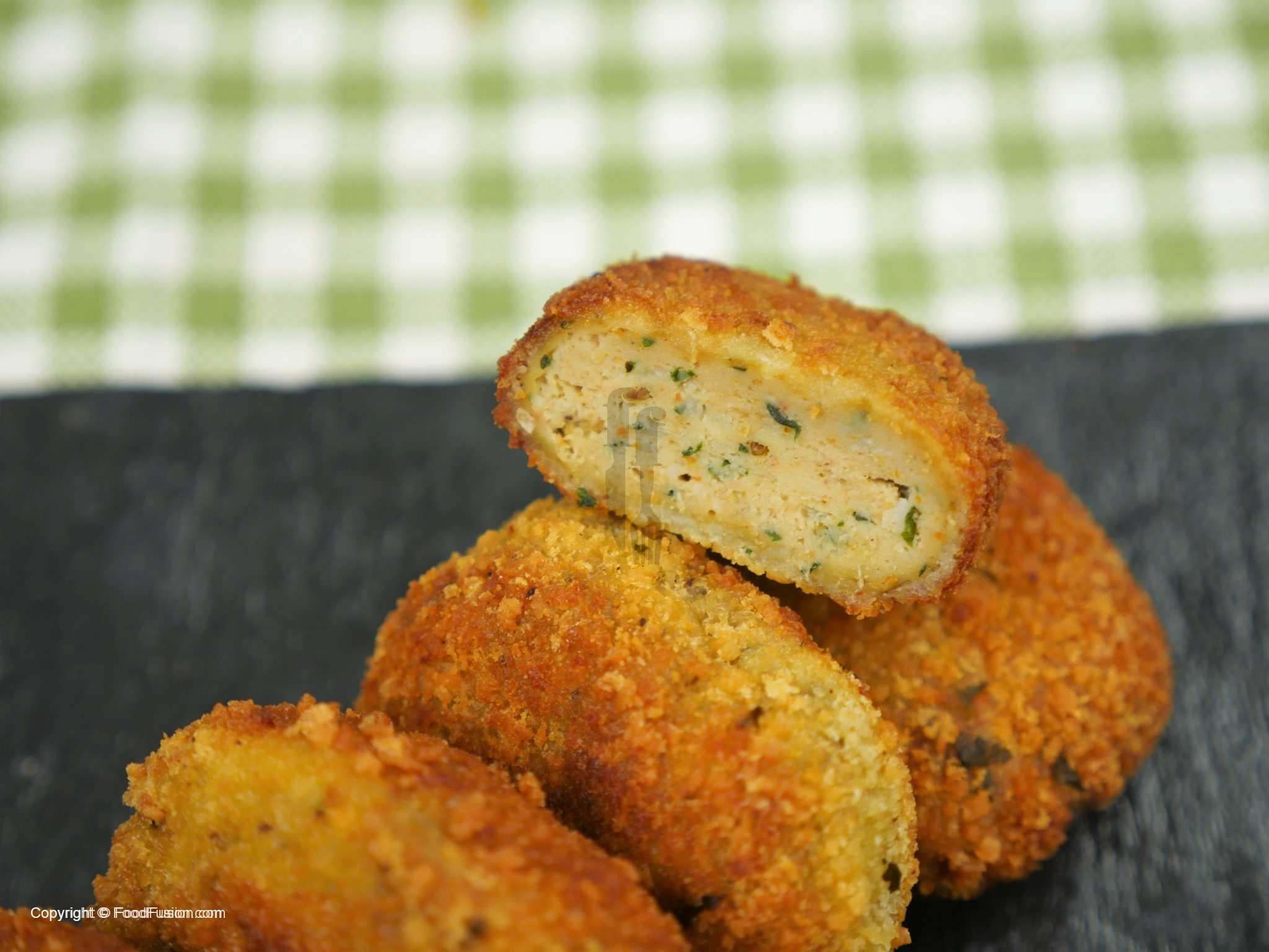 Coat in all-purpose flour mixture,dip in beaten egg then coat in breadcrumbs.