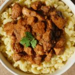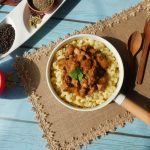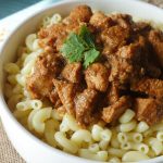 On serving plate,add boiled macaroni,korma masala & serve!