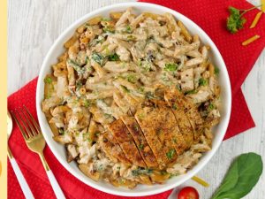 Macaroni aur cooked chicken dal ker ache tarhan mix ker lein.