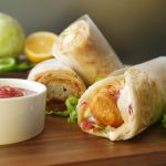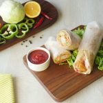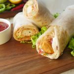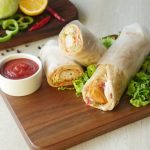 Paratha per tomato ketchup,stir fried vegetables,fried chicken nuggets aur tayyar cream & cheese sauce dal dein aur butter paper mein wrap ker ka serve karein!