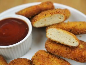 Nugget banana keliye, ,haathon Ko Tel Sa Grease Ker Lein, Chicken Ka Mixture La Ker Is Ko Nugget Ki Shape Bana Lein. Pehle Maida Mein Coat karain phir Anday Mein Dip Ker Lein, akhir main Breadcrumbs Mein Coat Ker Ke sare mixture ke nuggets bana kar Refrigerate Ker Lein 30 Minute Kliya.