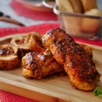 Flatten chicken fillets with the help of meat mallet and turn the side.
