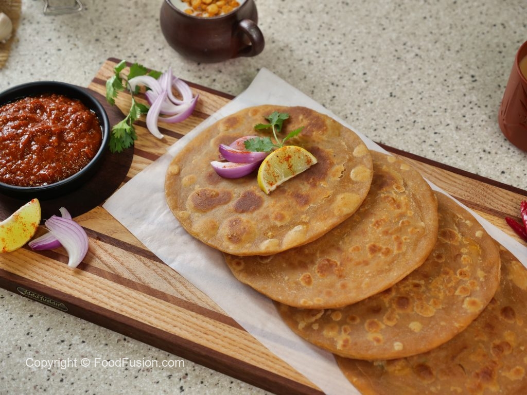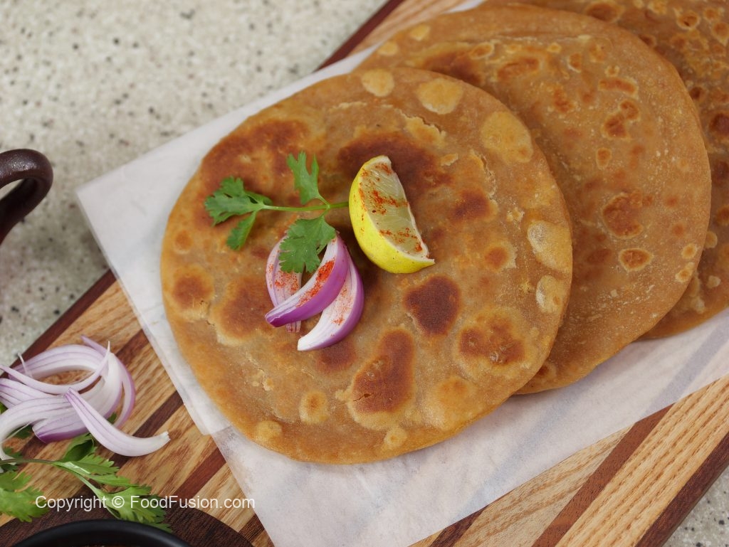 -Heat griddle & fry paratha with clarified butter on medium flame from both sides until golden (makes 9).