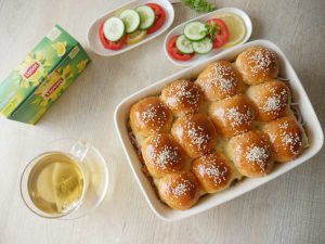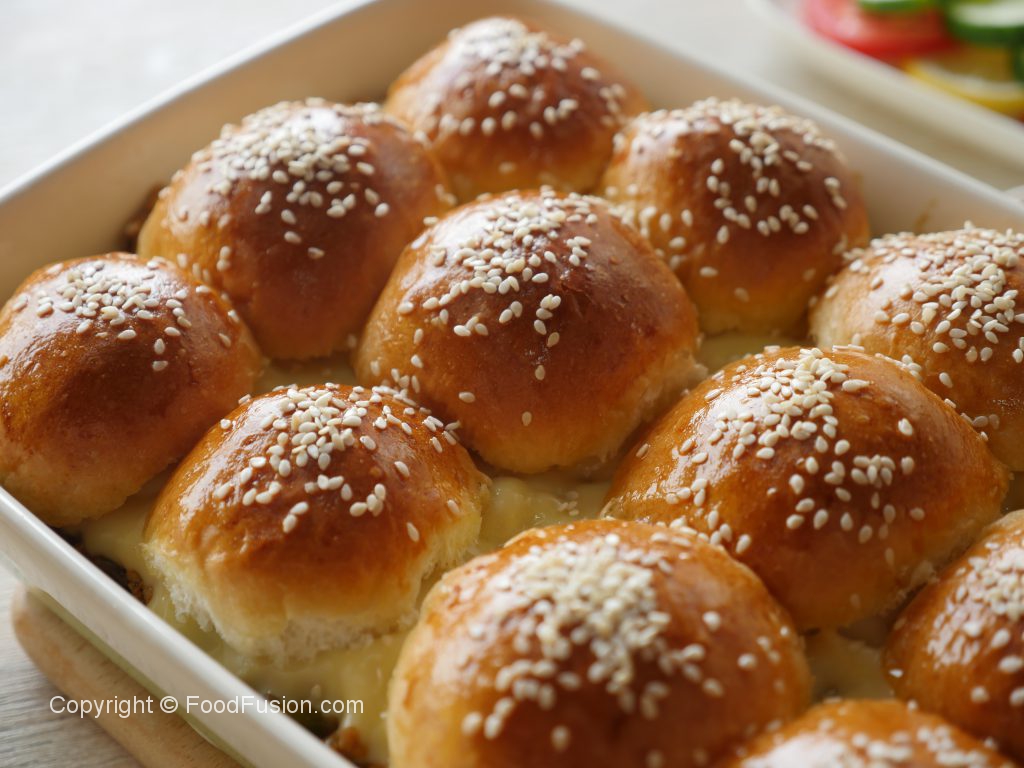 On the top of the buns,apply melted butter and sprinkle sesame seed.