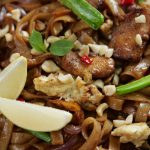 -Move the noodles on one side of wok,on the empty side of wok,add cooking oil,whisked egg & cook on medium flame until done.