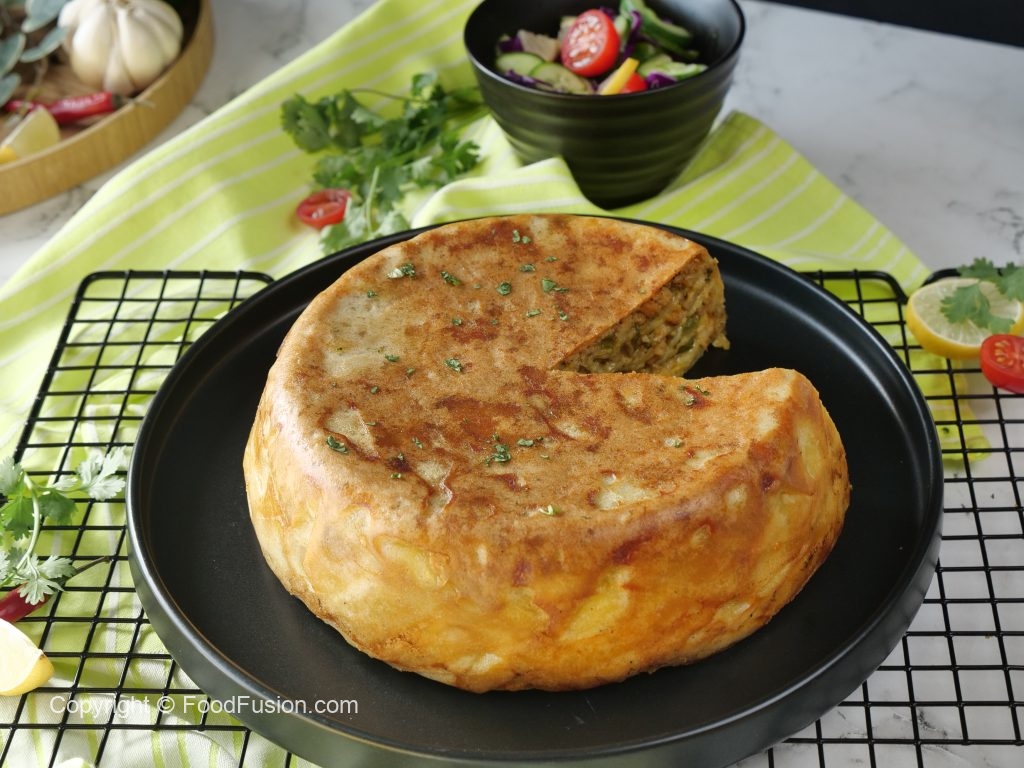 -Frying pan mein cooking oil dal ker pheela lein,chatti pathiri ki dosri side ko frying pan mein dal ker dhak dein aur halki ancch per 4-5 minutes kliya paka lein.