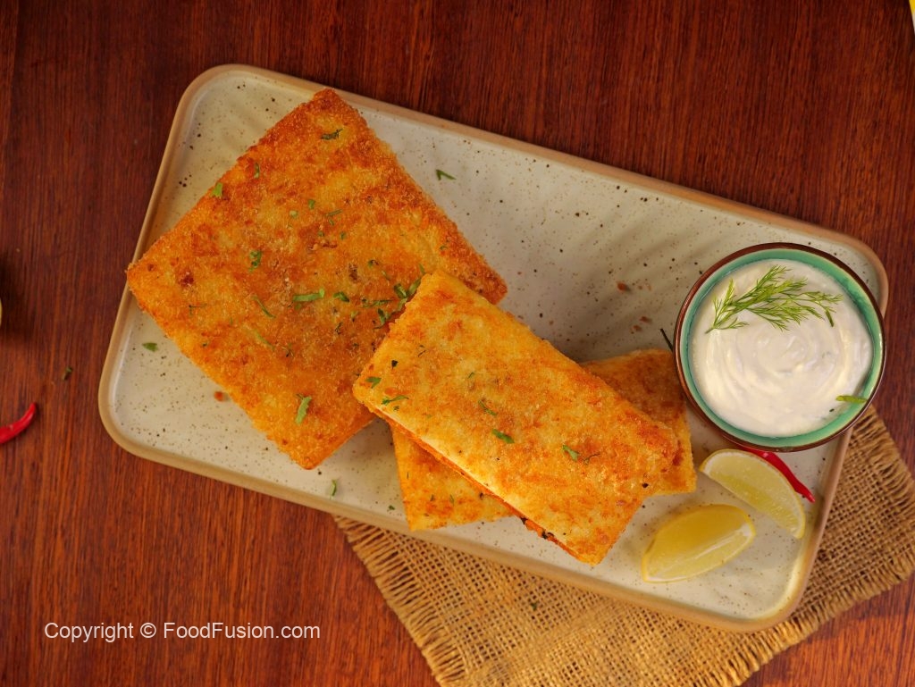 -Bread slice rakh kar uske edges trim karen, tamam corners ko achi tarah chop karen, bread crumbs tayar hain, side par rakh den.